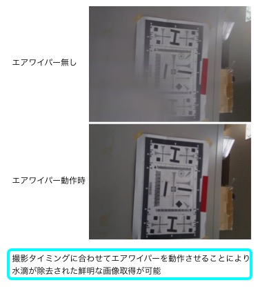監視カメラでは、カメラ前に蜘蛛の巣を張られてしまうなどの問題も発生します。 エアワイパーを利用して蜘蛛の巣など水滴以外の異物除去も検討しています